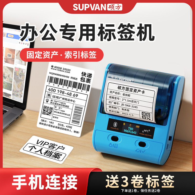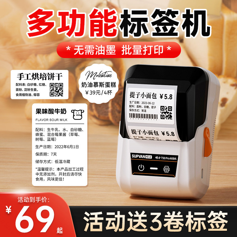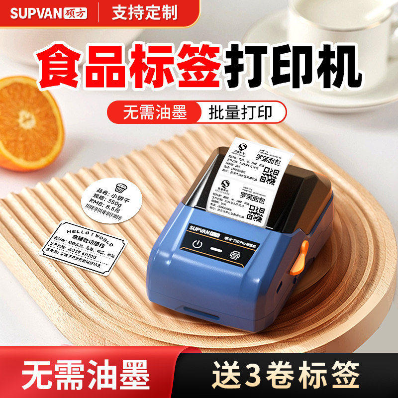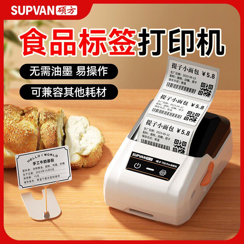 硕方食品标签打印机多功能价签机商用零售留样办公超市烟草生产日期合格证条码热敏家用便携蓝牙supvanT50Pro