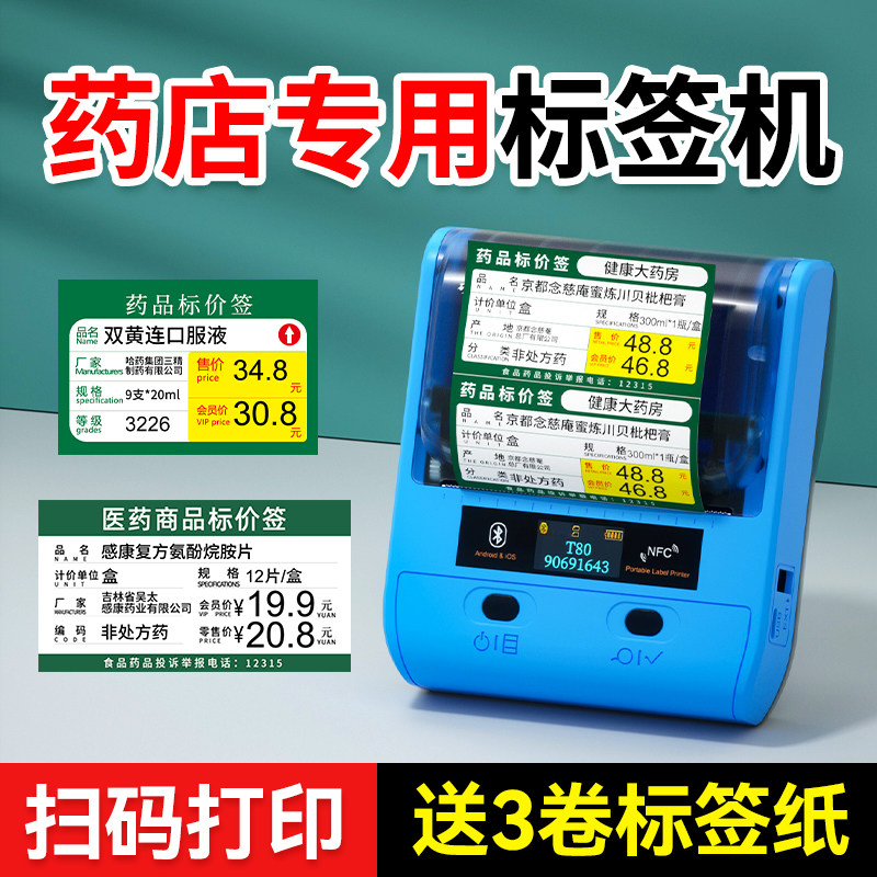 硕方T80药店标签打印机药品价签打印机医药价格打码器药房货架标价签手持便携式小型商品条码不干胶标签机T50