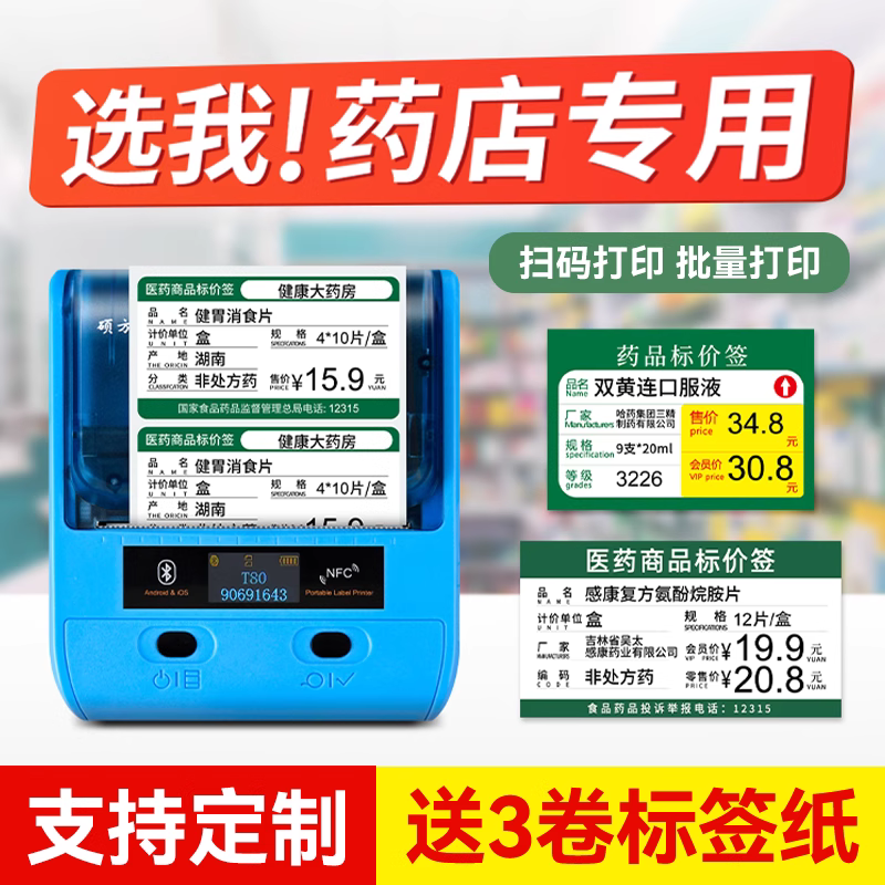 硕方T50/80药店标签打印机药房标价签药品价签医药价格标签打码器蓝牙便携式小型商品四防不干胶标签纸标签机