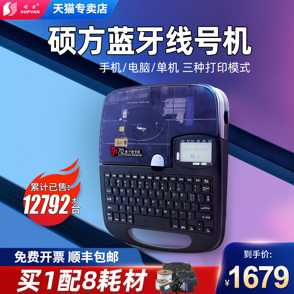 硕方线号机TP70打号机线号打印机号码管打码机套管打印机tp76i连电脑/蓝牙号码管套管线号管编码机标签打印机