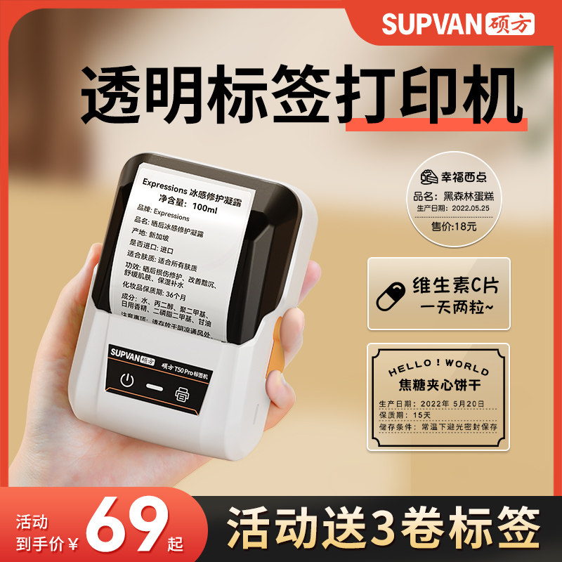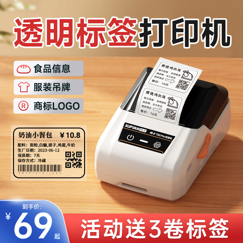 硕方T50pro透明标签打印机圆形标签商标logo不干胶热敏二维码条码食品服装吊牌生产日期小型标签机