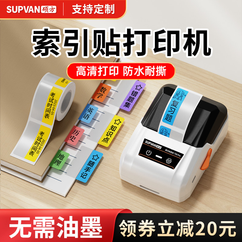 硕方T50Pro索引贴打印机姓名贴标签打印机记事创意笔记指示荧光标记贴便签小本子学生用书签纸便利贴标签机