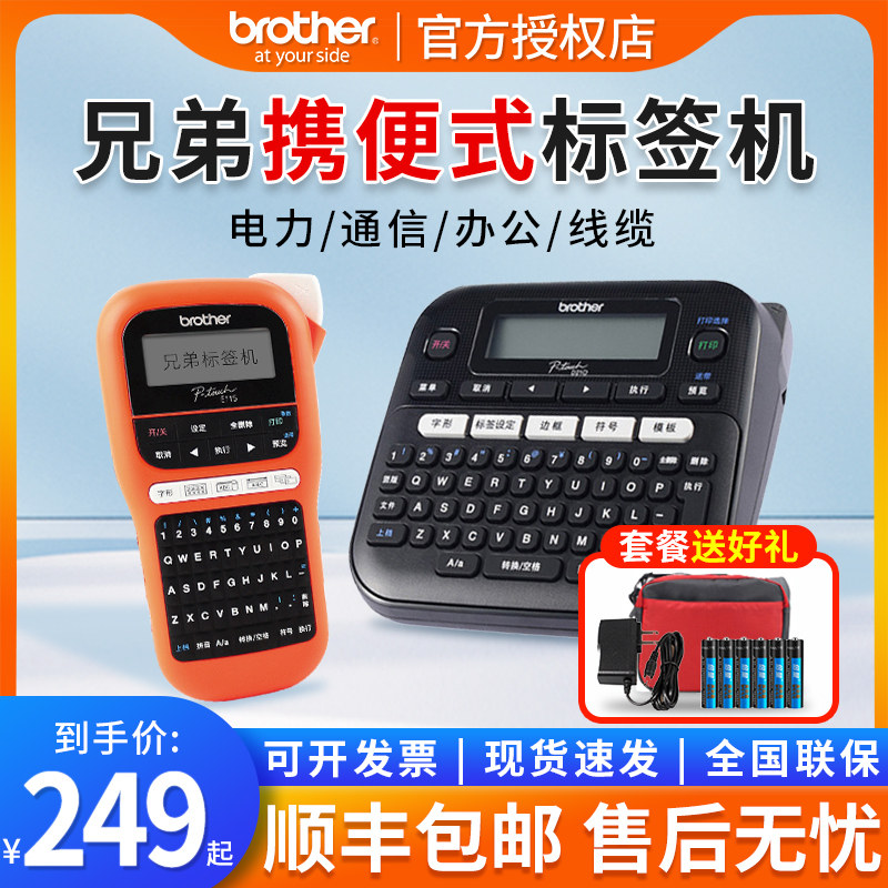 兄弟标签机PT-E115B/D210手持小型便携式线缆贴纸家用不干胶标签打印机迷你brother固定资产电力网线条码机