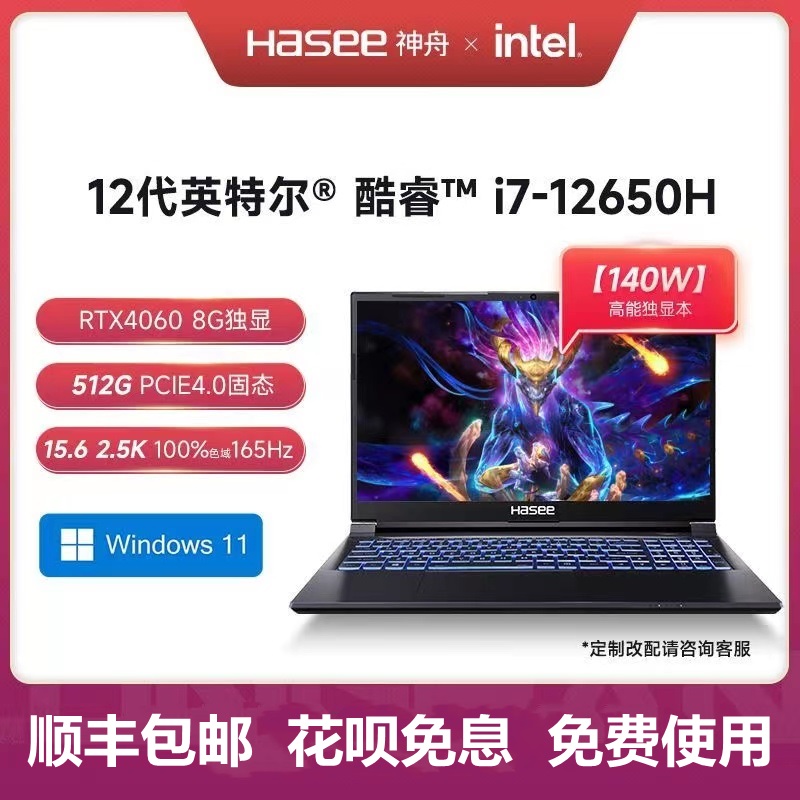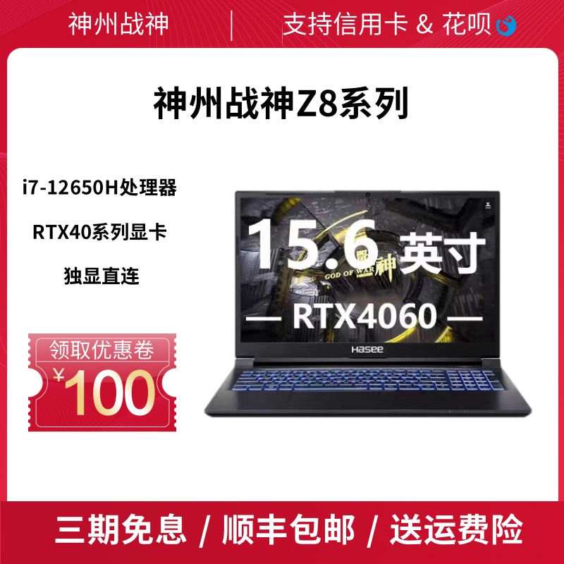 Hasee/神舟 战神 Z8游戏本3060独显笔记本4060电脑花呗i7学生3070