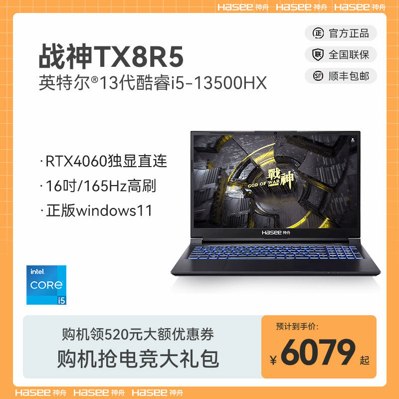 Hasee/神舟战神TX8R7学生I7手提4060独显2.5K电竞游戏笔记本电脑