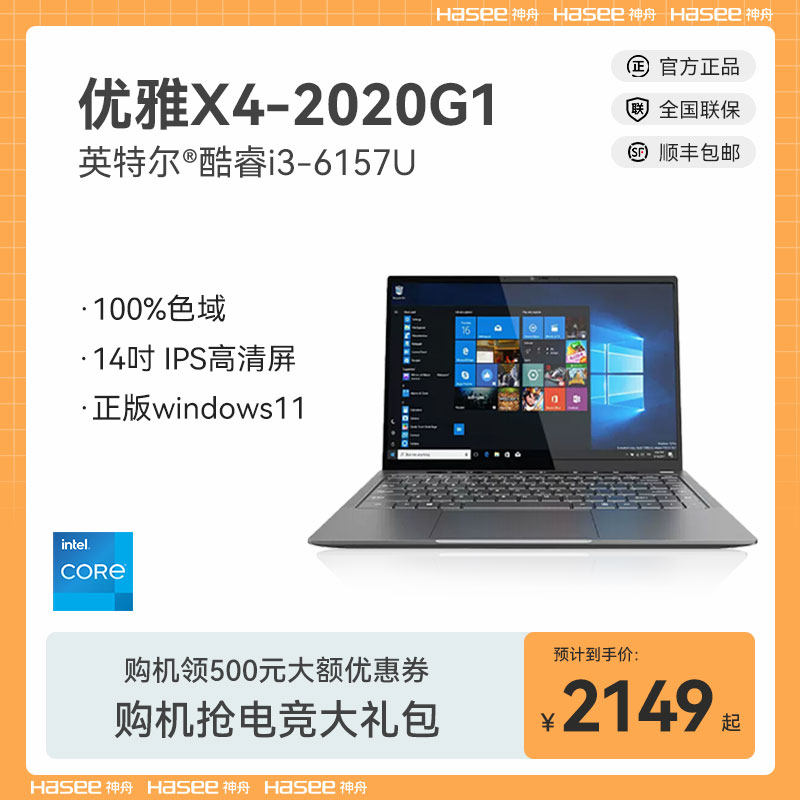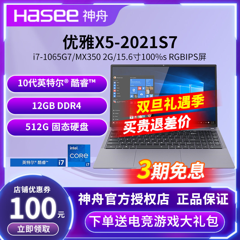 Hasee神舟优雅X4-2020S2/S3/X5-S7酷睿i5 学生高配颜值办公手提轻薄便携超极本神州笔记本电脑性价比高2022款