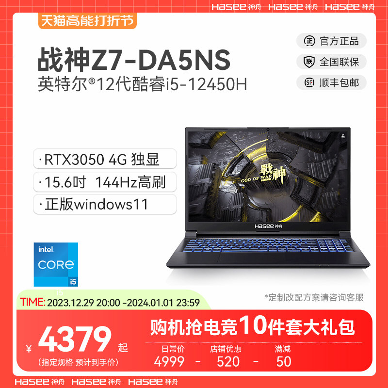 Hasee神舟新战神Z7/Z7T/新S8-C42/S8D6酷睿i5 i7/RTX3050/4050独显/15.6吋窄边框学生便携电竞游戏本笔记本电
