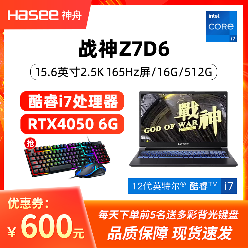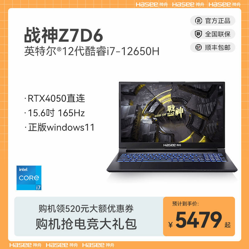 【官方专卖店】Hasee神舟新战神Z7D6酷睿i7 RTX4050独显直连15.6吋窄边框学生便携电竞游戏本笔记本DDR5内存
