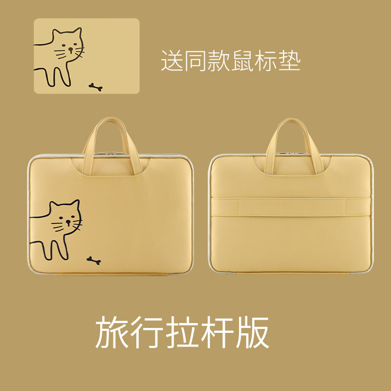 笔记本电脑包女手提适用华为matebook小米戴尔联想苹果微星神舟战神13/13.3寸14/15.6寸黄猫咪小清新防水面料