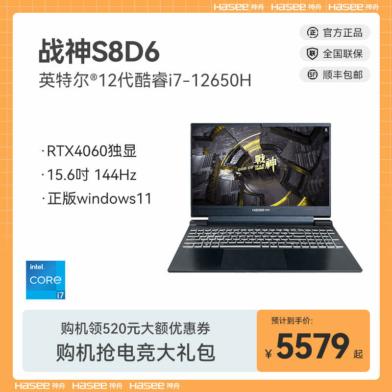 神舟战神S7/S8/Z7/Z8D6英特尔酷睿i5/i7 RTX4050/4060独显15.6英寸笔记本电脑学生游戏本设计吃鸡手提