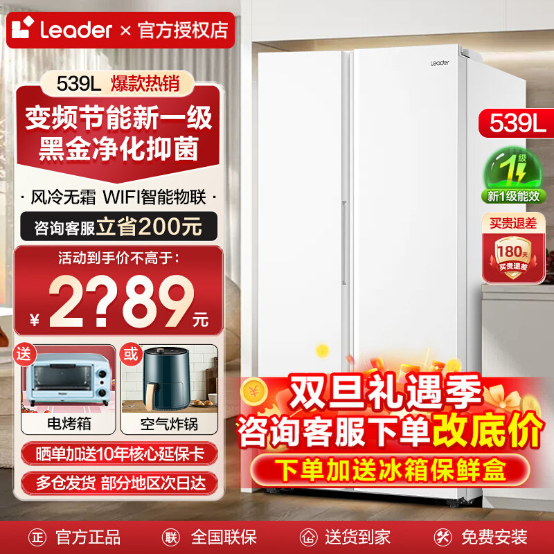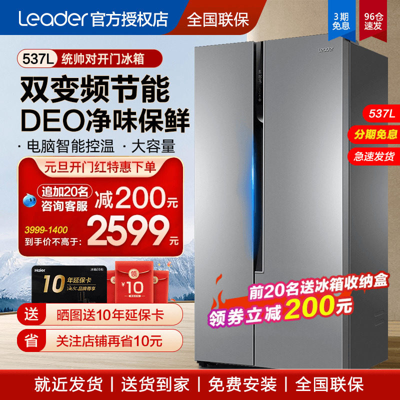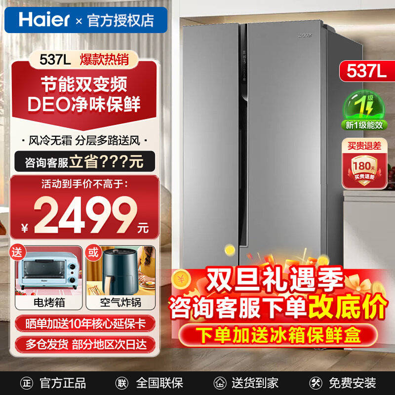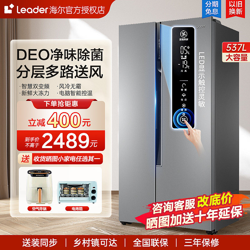 海尔冰箱537/539升双变频冰箱风冷无霜对开门两门大容量净味统帅