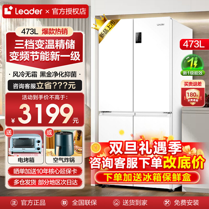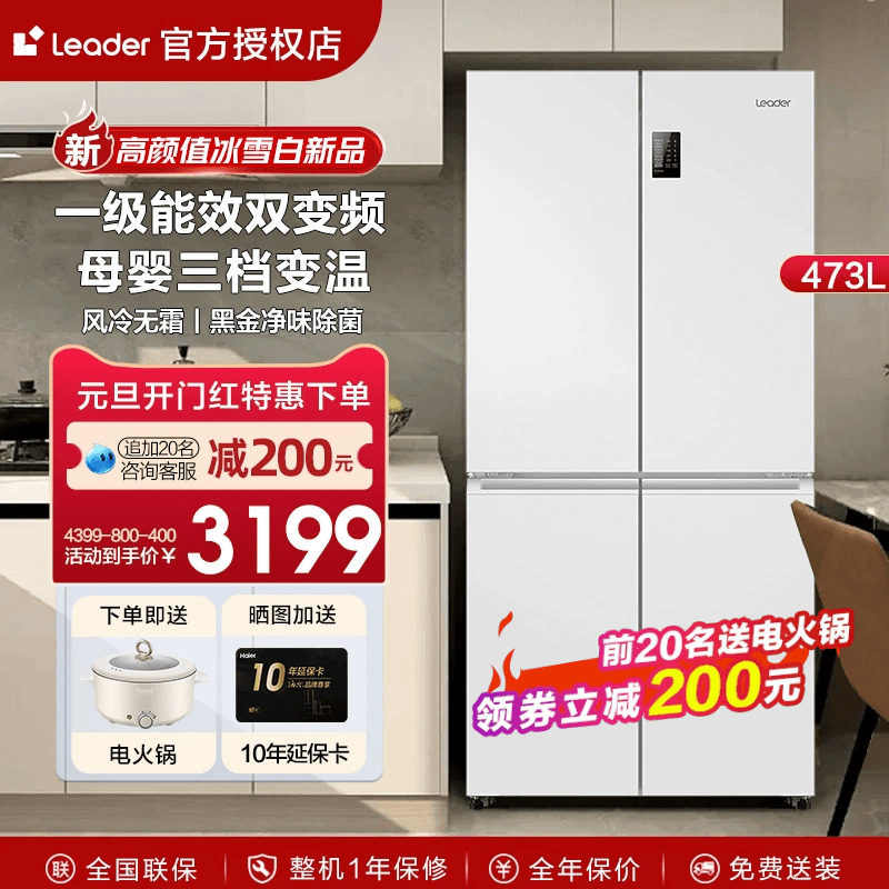 [新品]海尔电冰箱白色统帅473升L十字四门一级能效家用官方旗舰店
