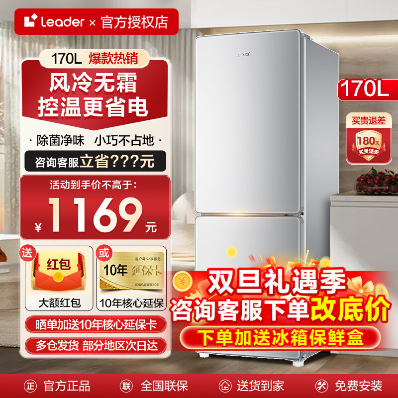 Leader/统帅BCD-169WLDPD 169升风冷无霜两门双开门家用冰箱海尔