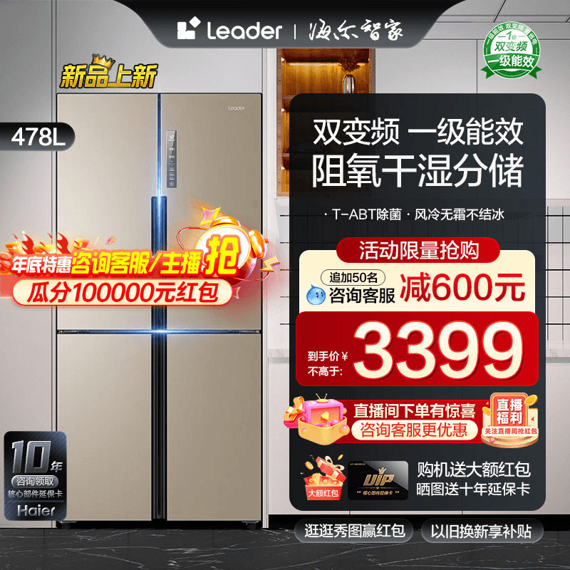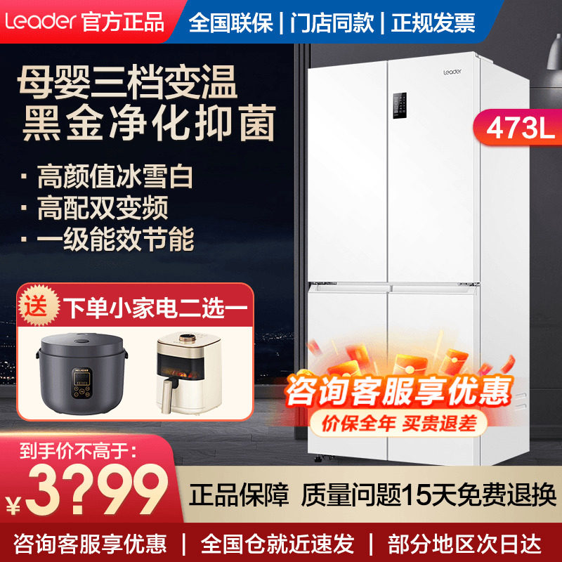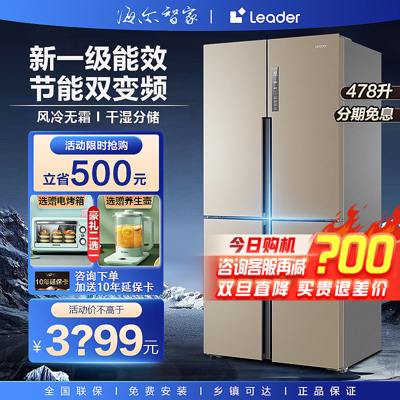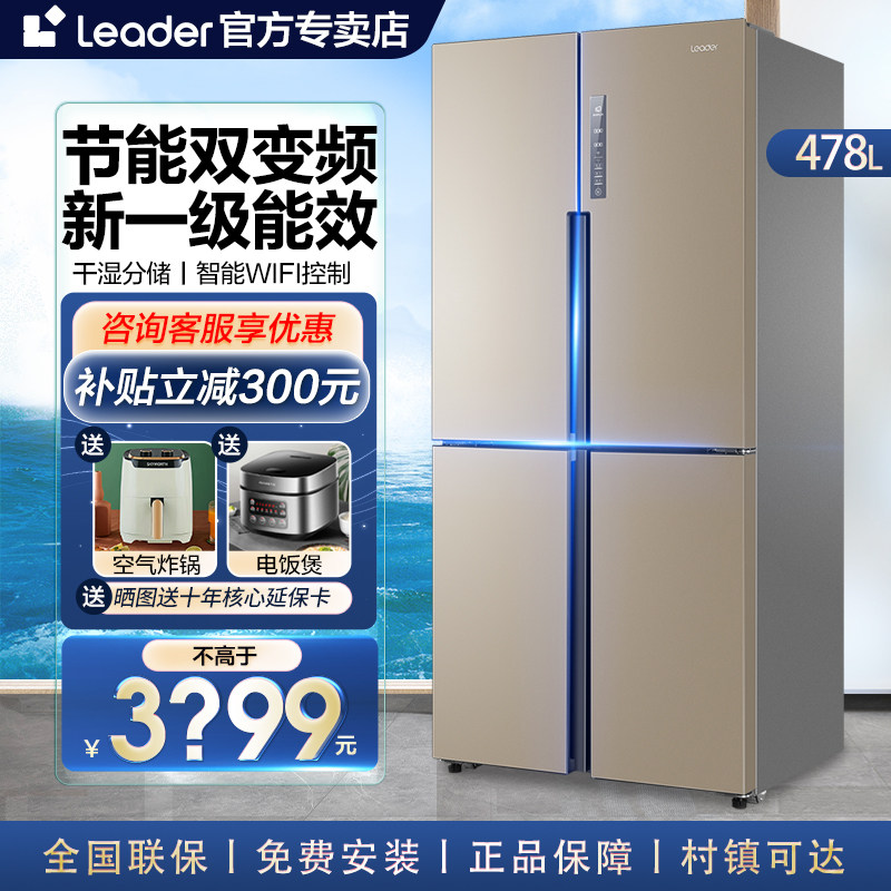 统帅冰箱四门十字对开门家用大容量无霜一级变频475/478L官方海尔