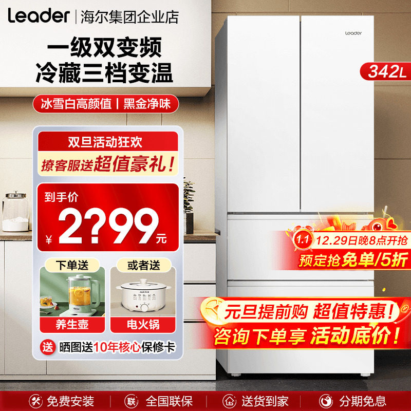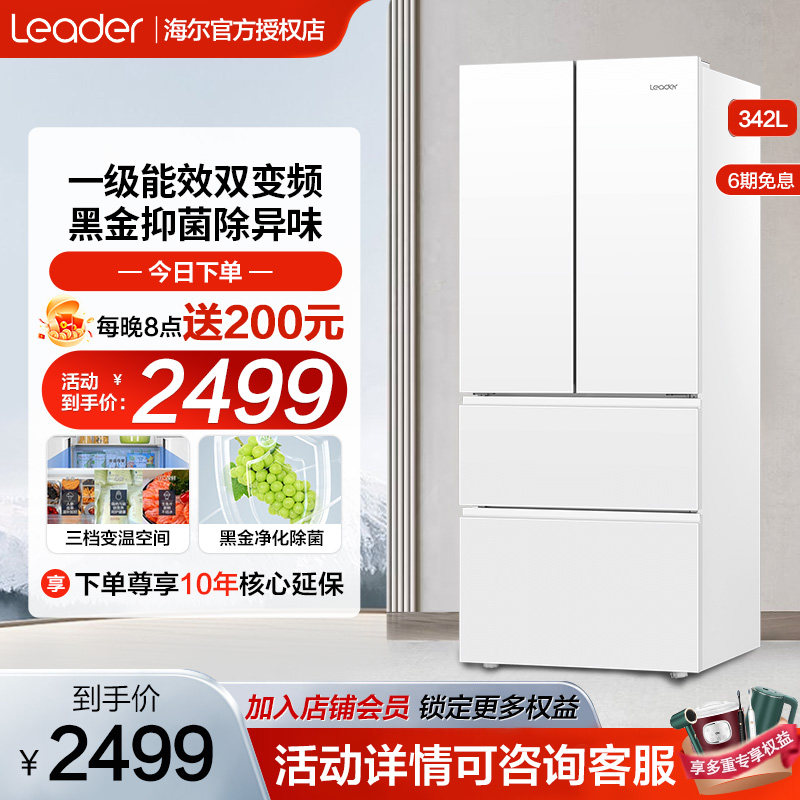 【冰雪白】海尔冰箱无霜统帅342L法式多开门家用一级能效节能变频