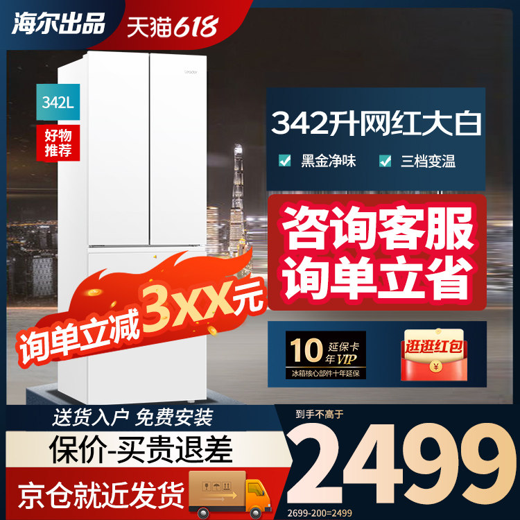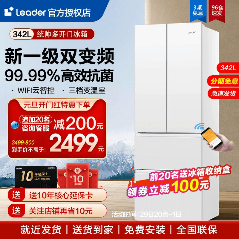 海尔电冰箱统帅342升白色法式多四门家用一级能效无霜官方旗舰店