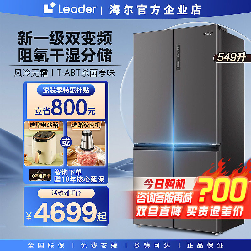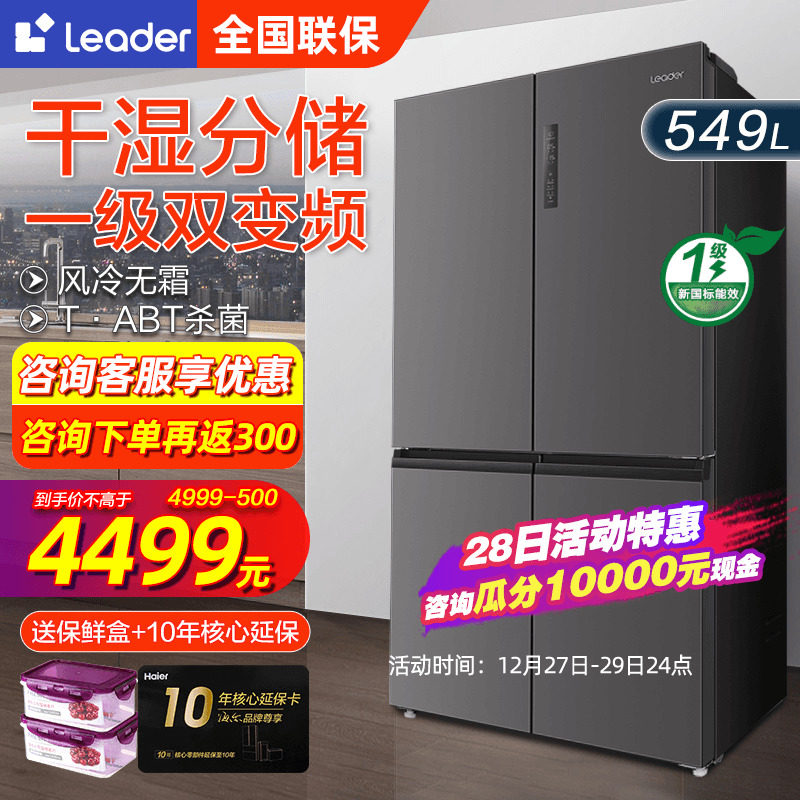 海尔电冰箱家用549L一级双变频风冷无霜双循环超簿十字四开门统帅