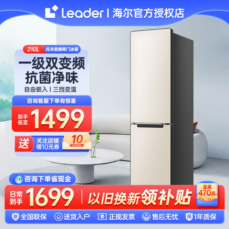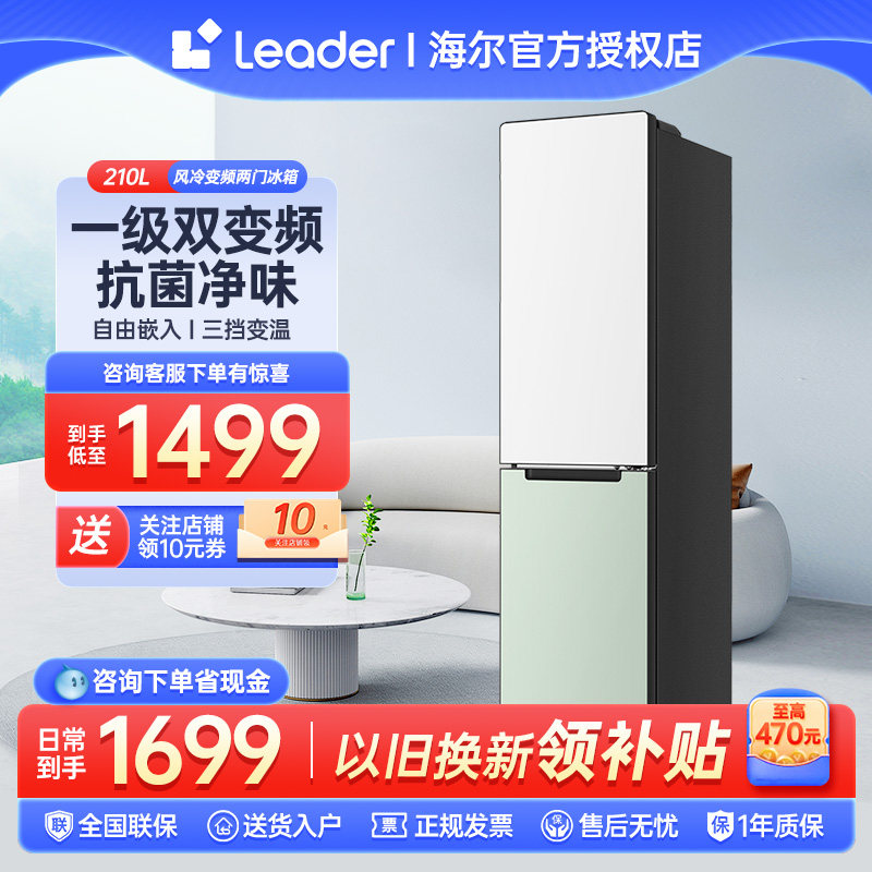 海尔统帅小彩条两门冰箱210L双拼色一级变频家用嵌入小型超薄租房