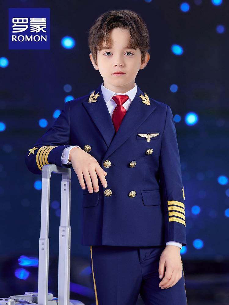 罗蒙儿童机长制服男童西装套装小西服海军飞行员模特走秀演出礼服