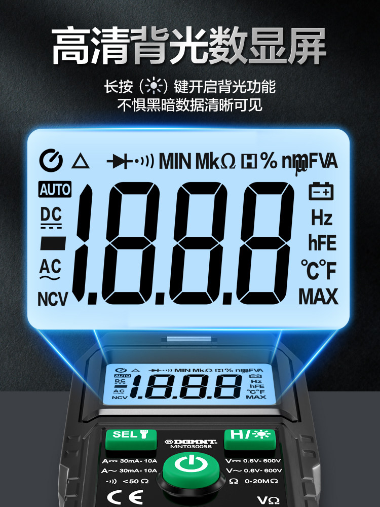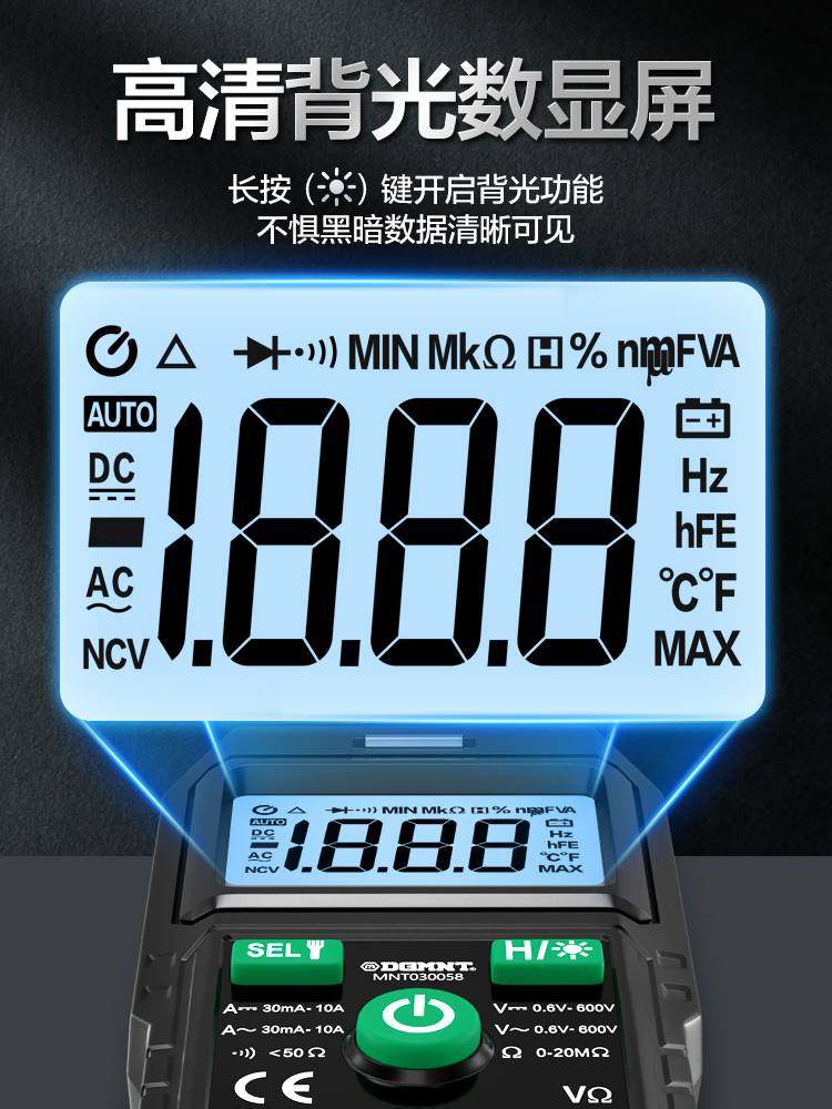 美耐特智能数字万用表全自动高精度小型便携式电工家用电容万能表