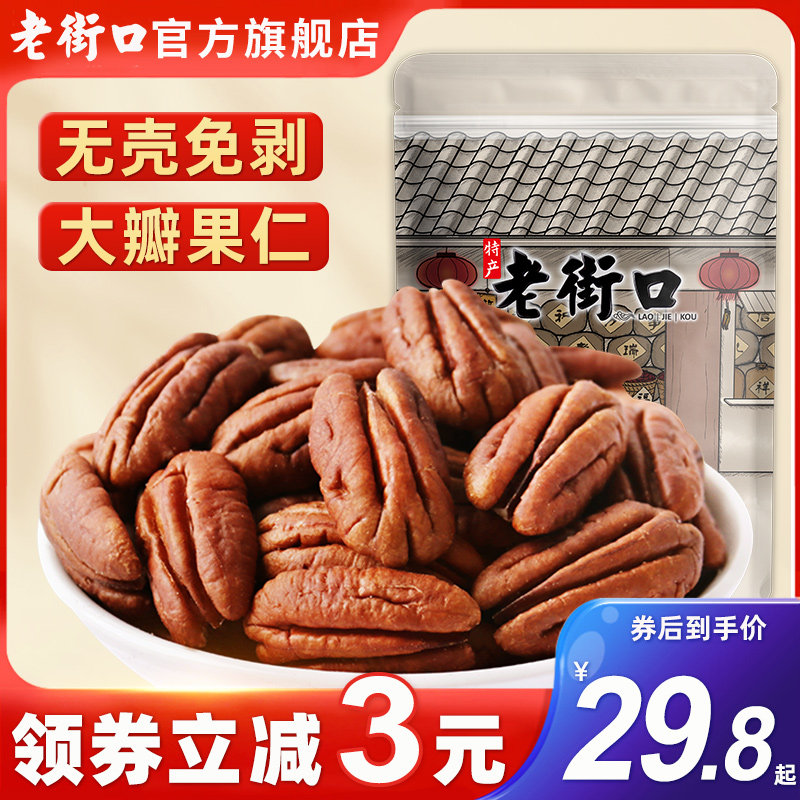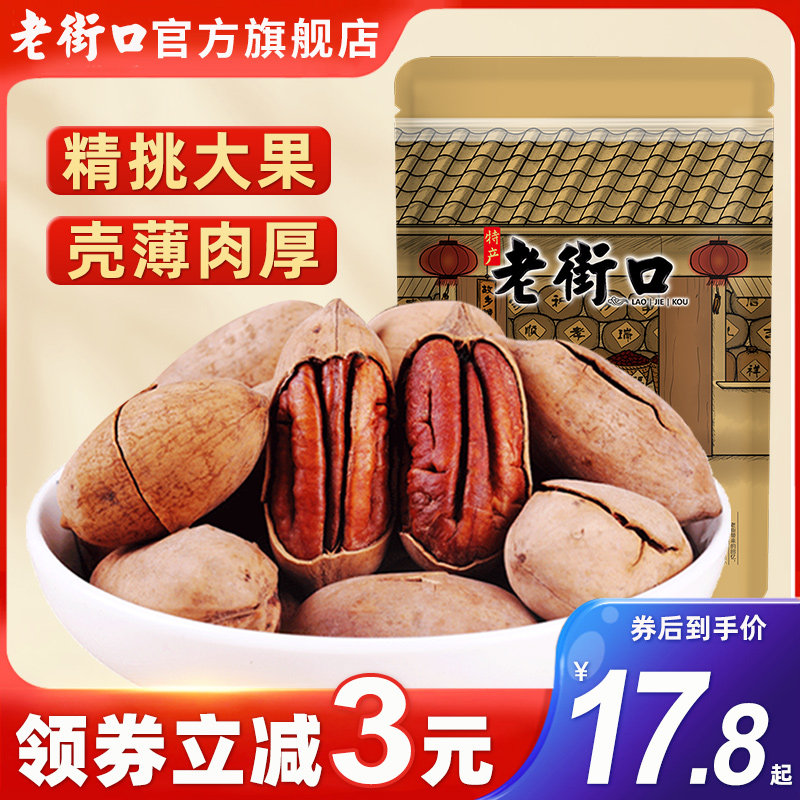 老街口碧根果坚果250g*3袋装可选奶油味山核桃长寿果休闲零食特产