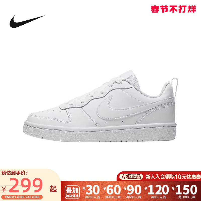 NIKE耐克女子COURT BOROUGH大童运动童鞋纯白低帮板鞋BQ5448-100