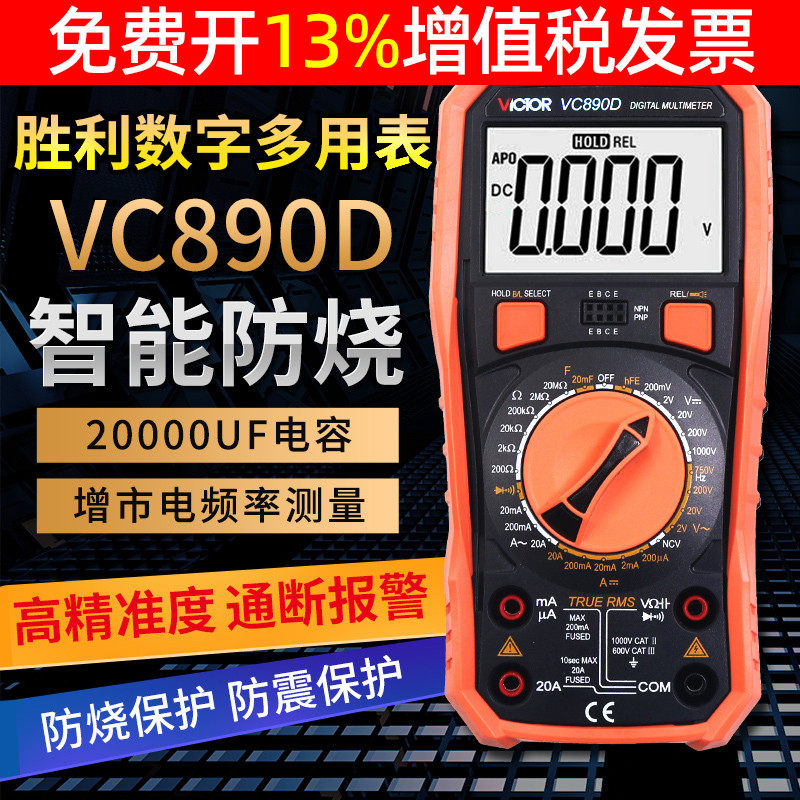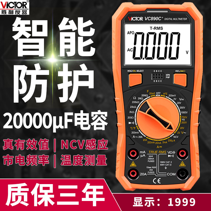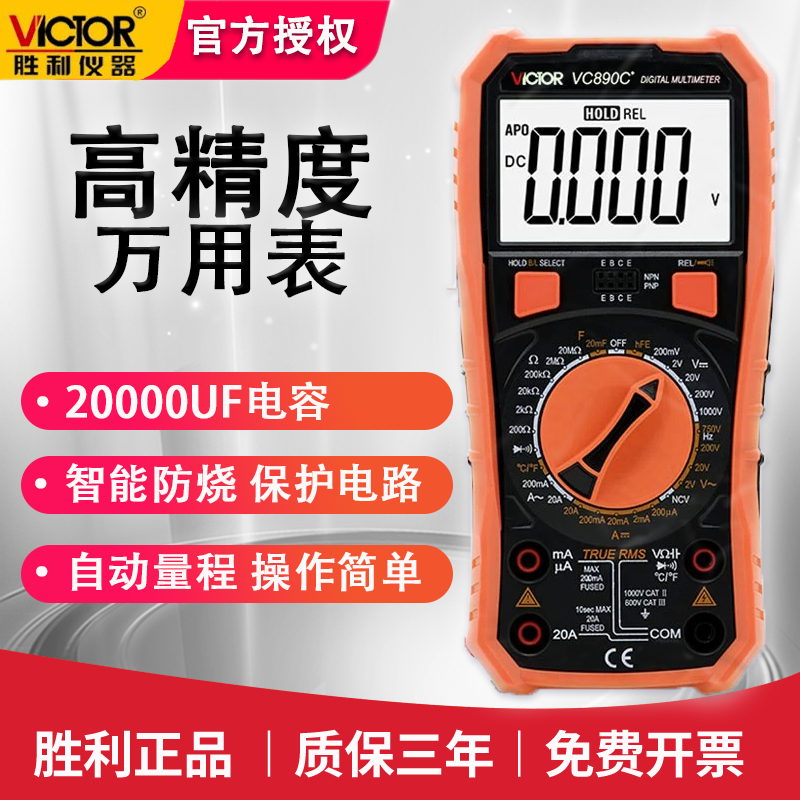 胜利万用表数字高精度全自动多功能电工数显式万能表防烧VC890G/H