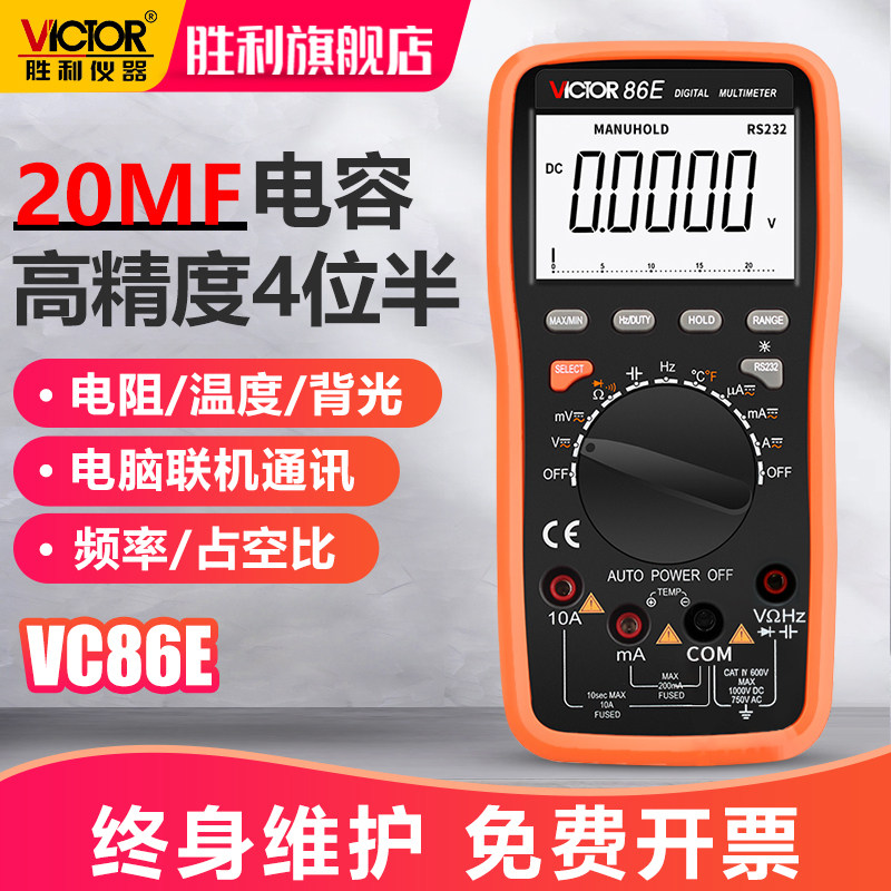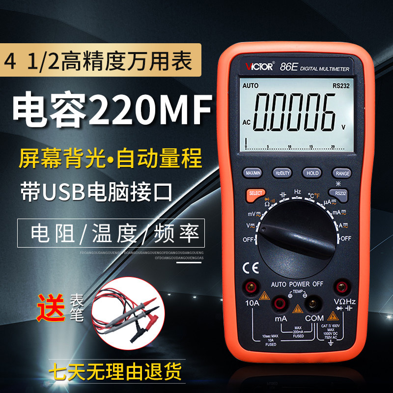 胜利高精度万用表数字VC86E四位半频率电容自动量程智能USB万能表