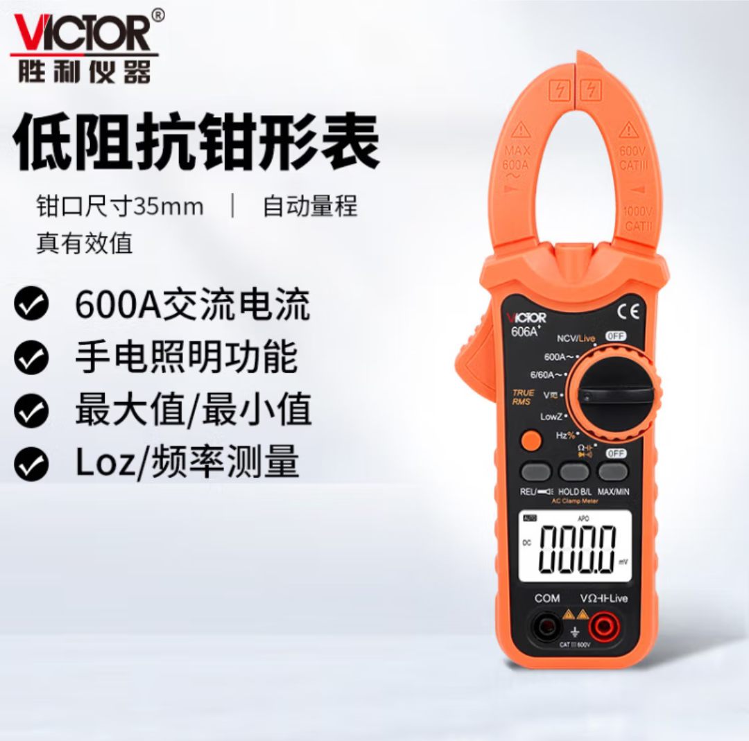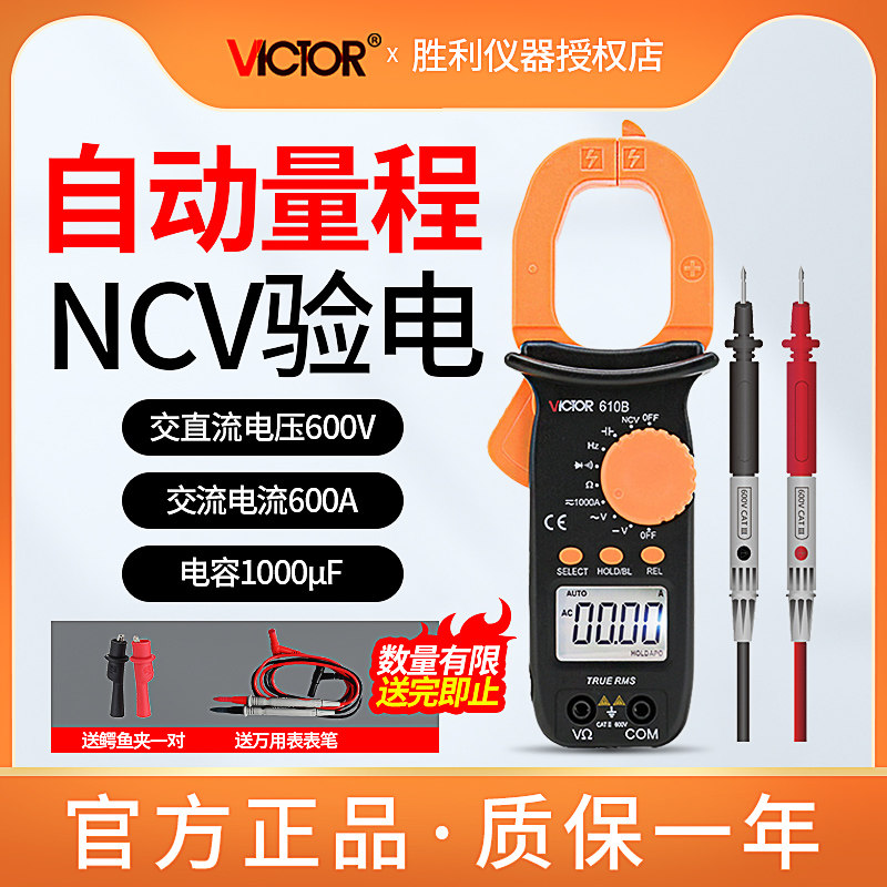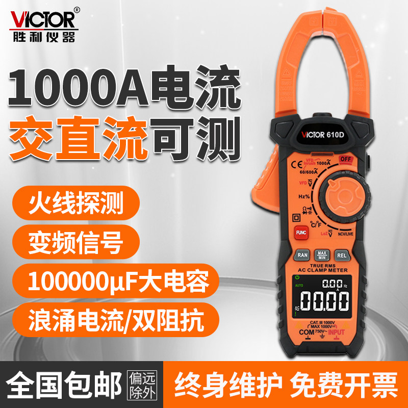 胜利VC610D钳形表数字钳形万用表1000A交直流电流表VC610E钳流表