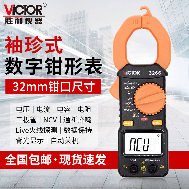 胜利VC3266钳形表交直流钳表小型迷你袖珍电流表多功能电工万用表