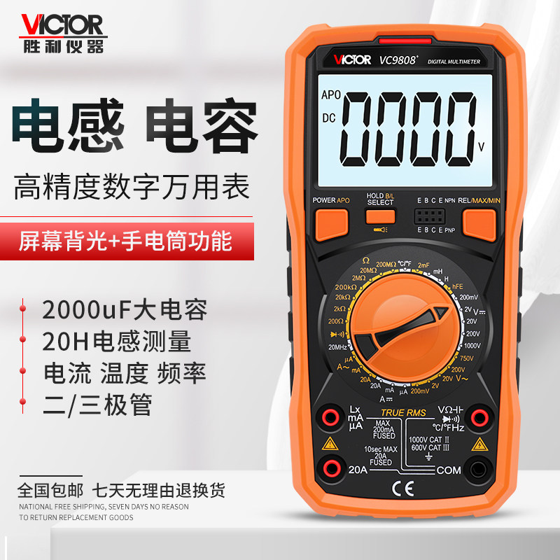 原装正品胜利VC9808A+数字万用表VC9808+可测温度频率电感电流