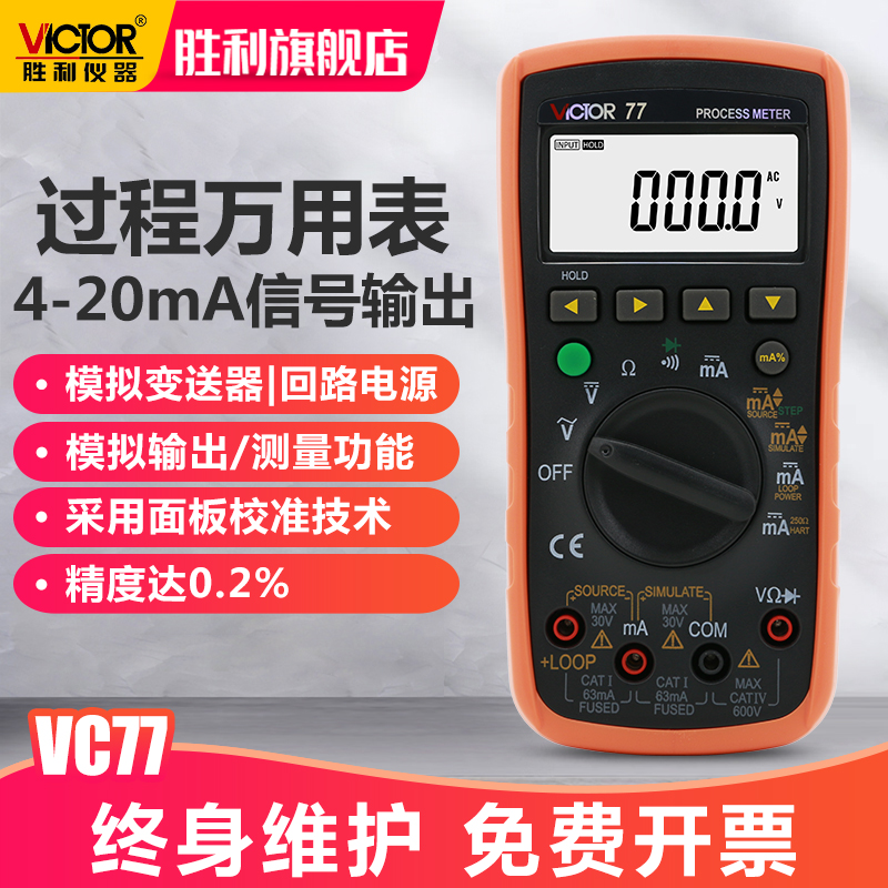 胜利仪器 VC77过程信号源数字万用表 4-20MA信号输出 过程万能表