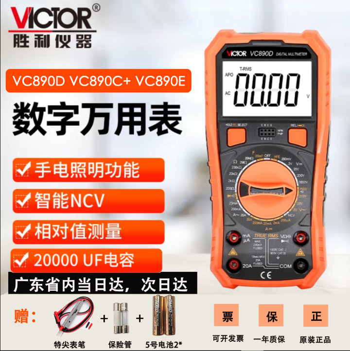 胜利万用表数字万能高精度电压多用表数显电表背光自动关机VC890E