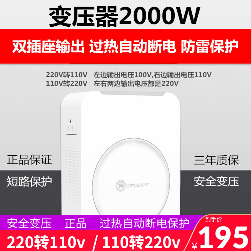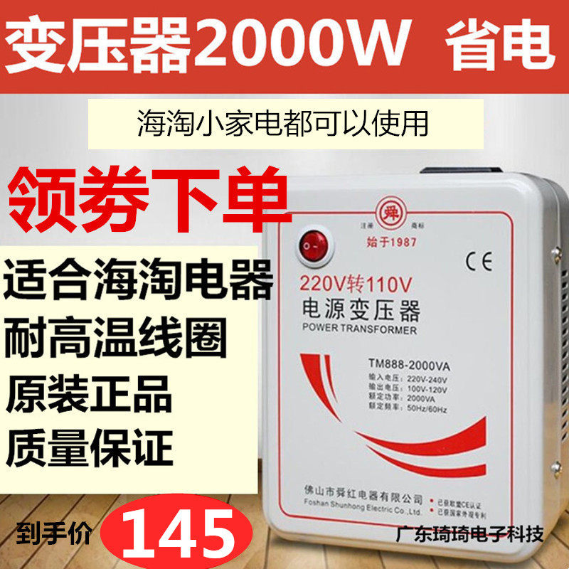 变压器220v转110v 100v电压转换器2000w美国日本电饭煲吹风机舜红