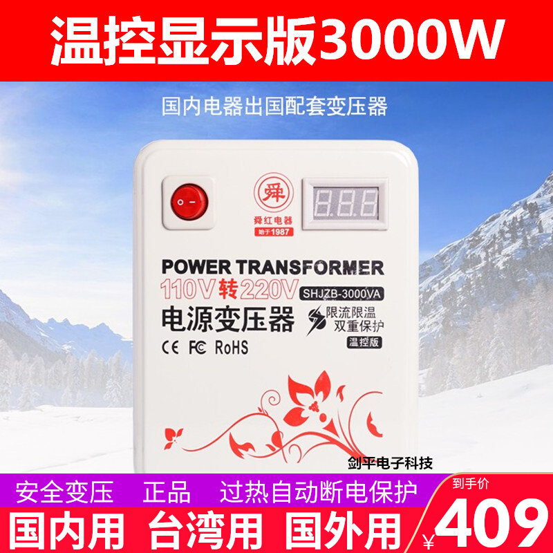 舜红3000W变压器220V转110V/110v转220v带温控带显示大功率电器用