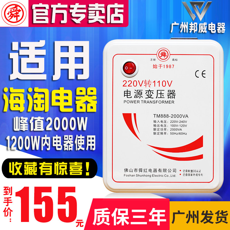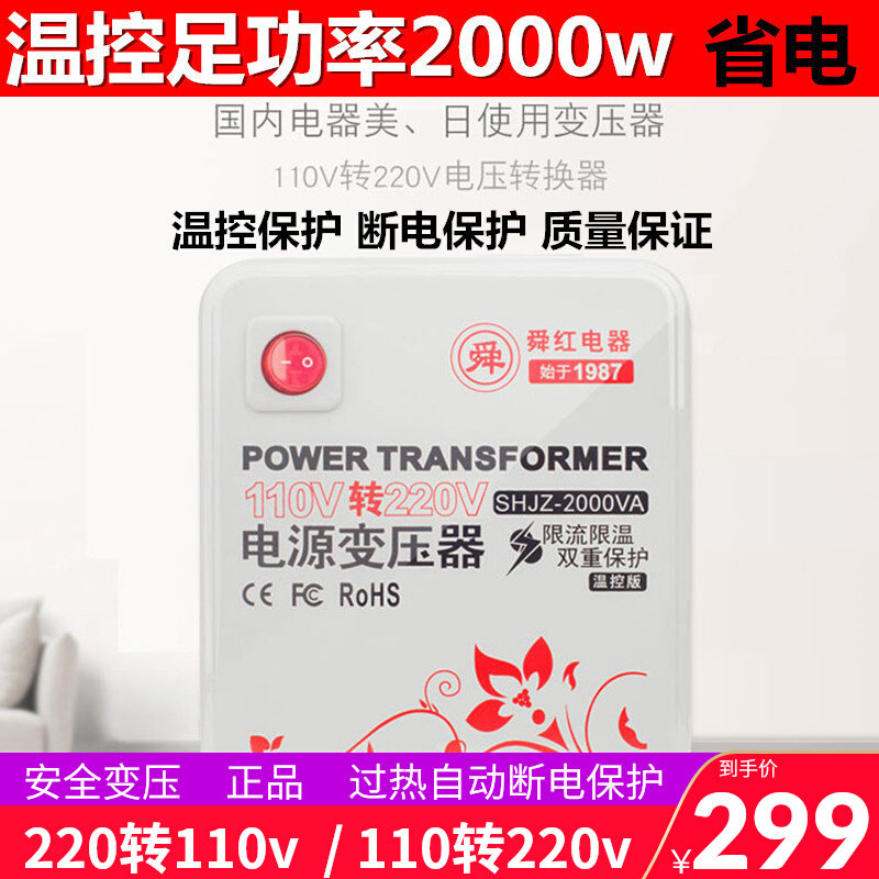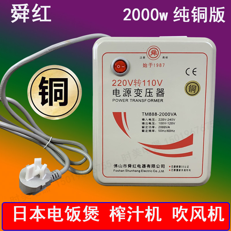 正品纯铜2000舜红220v转110v110v转220v变压器纯铜足功率变压器
