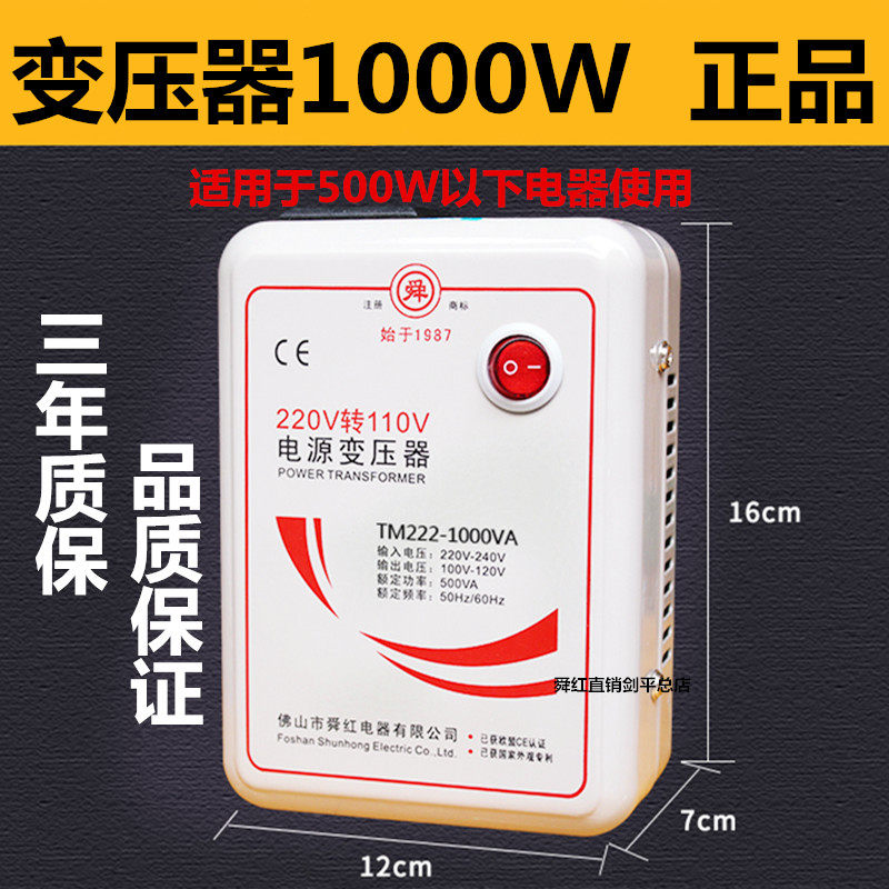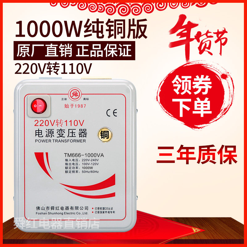 舜红纯铜足功率220v转110v100V1000W变压器日本/美国电器转换