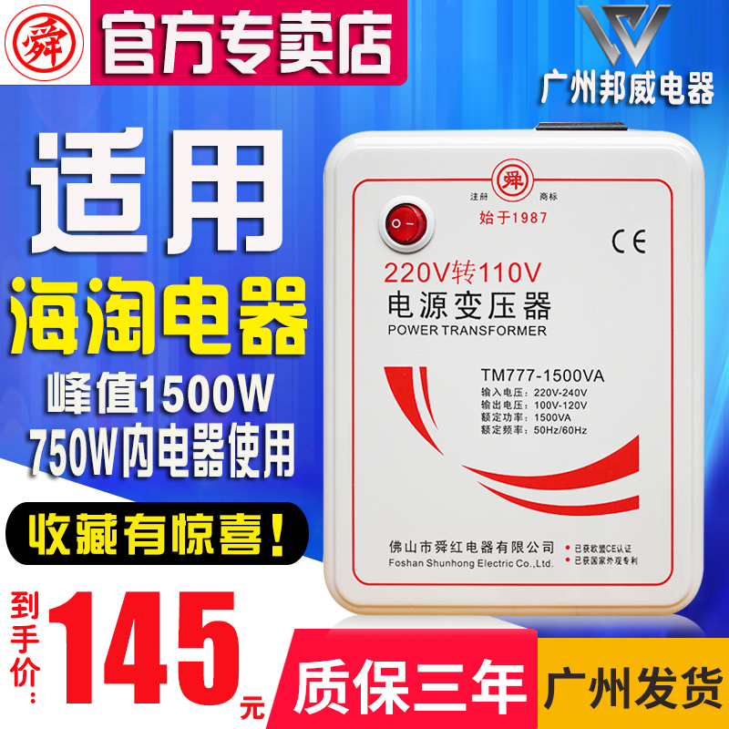 新款普通版1500W舜红变压器220v转110v日本美国进口电器用