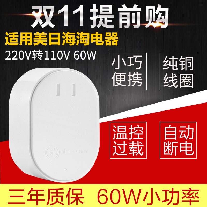 舜红60W变压器220v转110v转220V 日本美国小功率牙刷电源压转换器