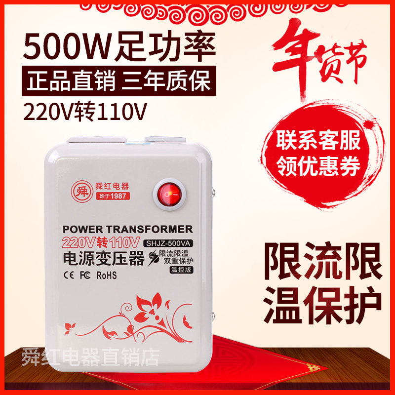 舜红足功率500W变压器220V转110V110V转220V日本美国电源转换器