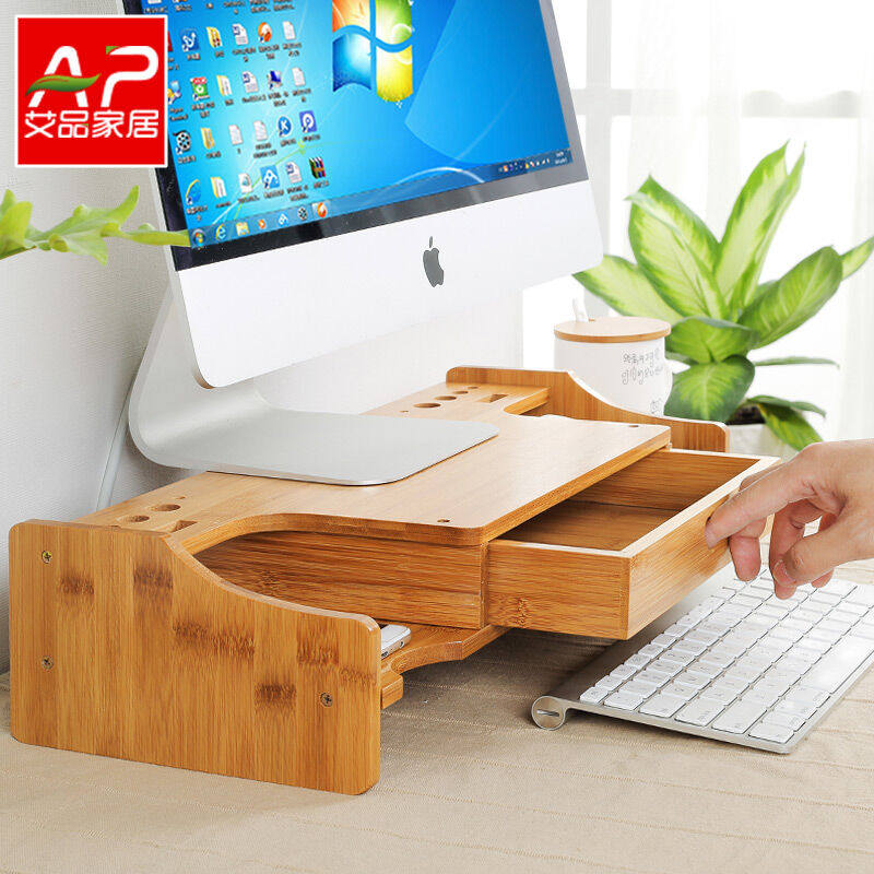 艾品楠竹笔记本电脑显示器架键盘底座托架支架办公桌面收纳置物架
