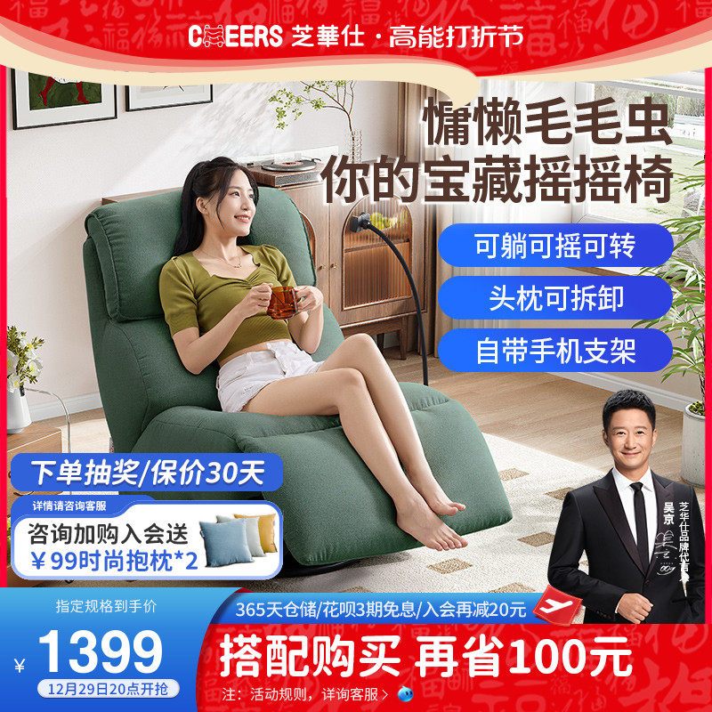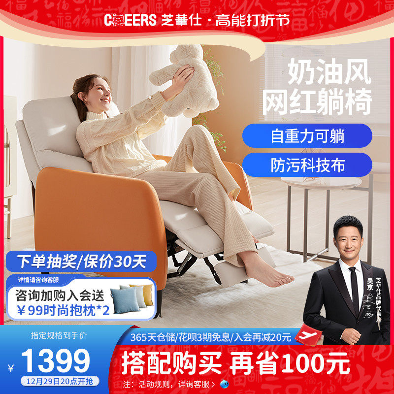 芝华仕头等舱布艺功能沙发奶油客厅阳台休闲毛毛虫午睡懒人椅4123