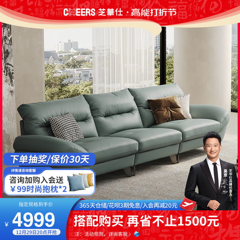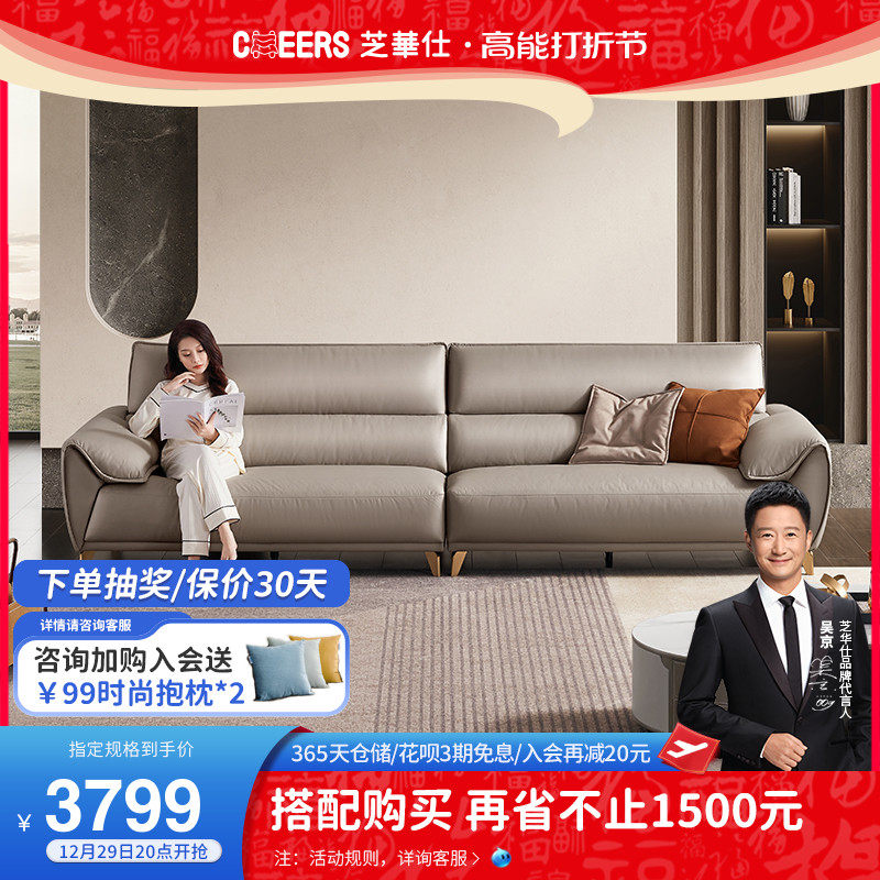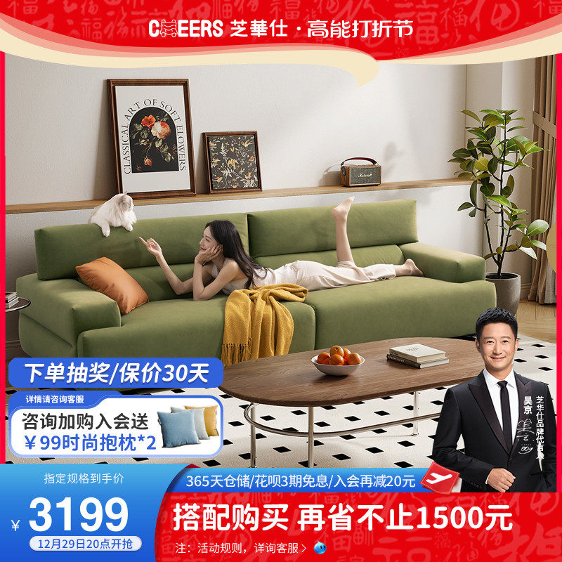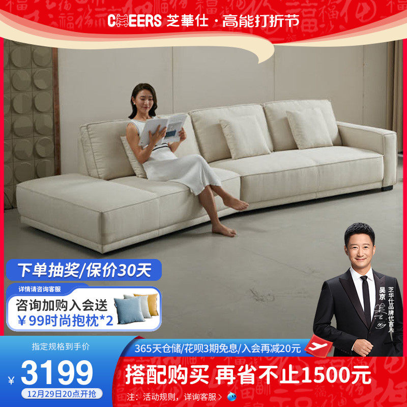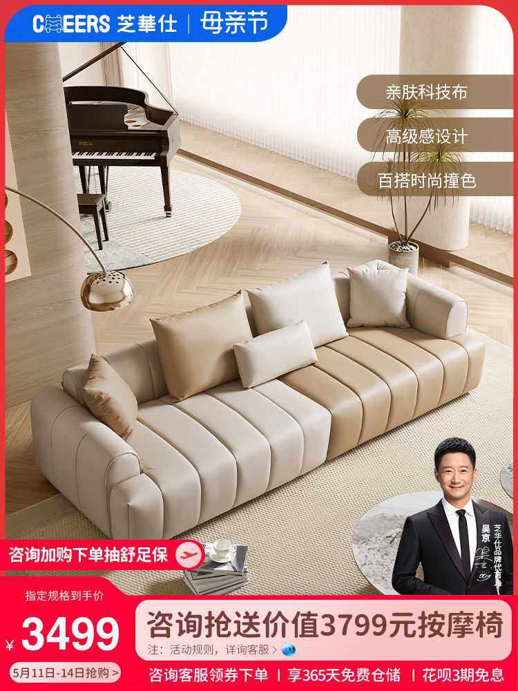芝华仕意式极简轻奢磨砂布艺直排沙发客厅现代简约羽绒乳胶网红款