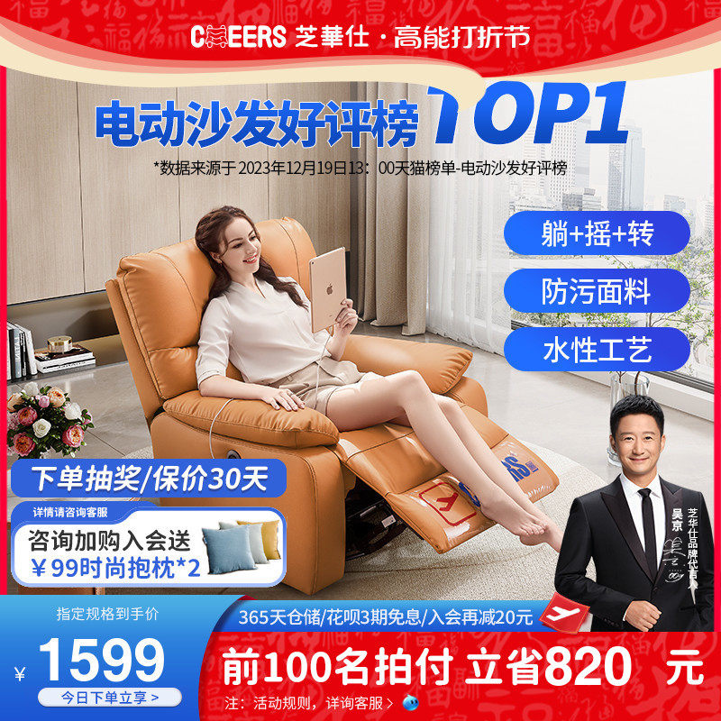 芝华仕头等舱纳帕生态云皮沙发现代客厅电动多功能布艺单椅70381