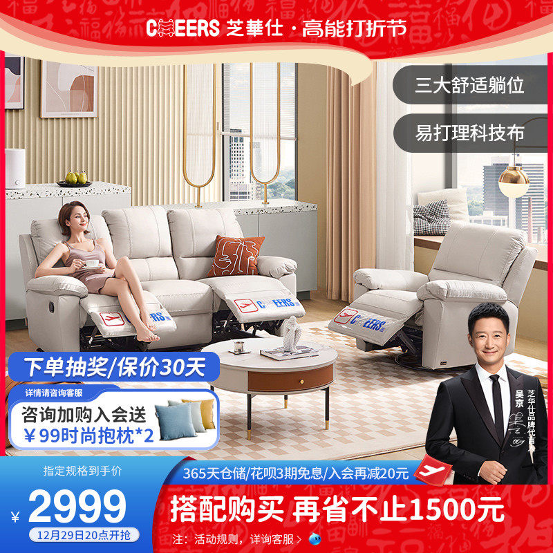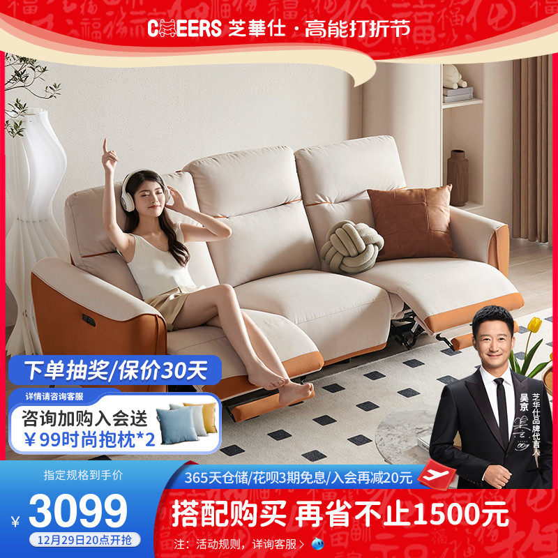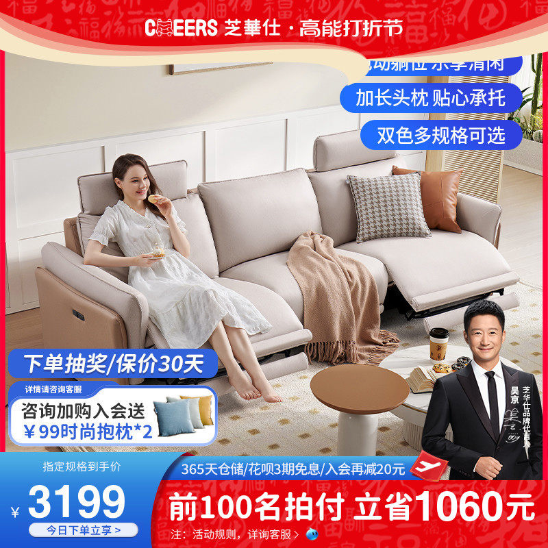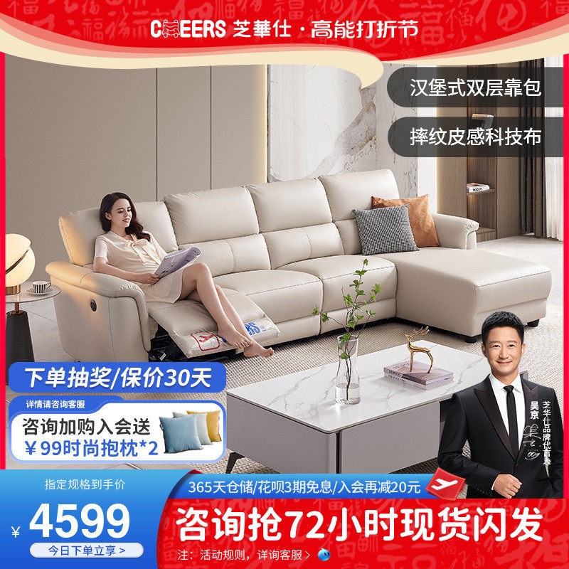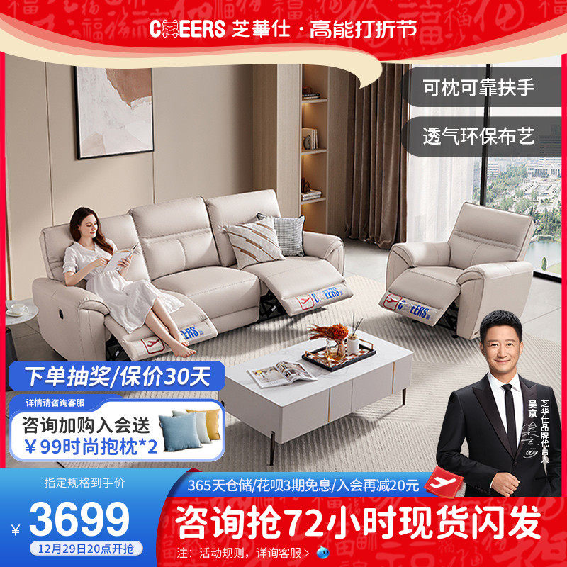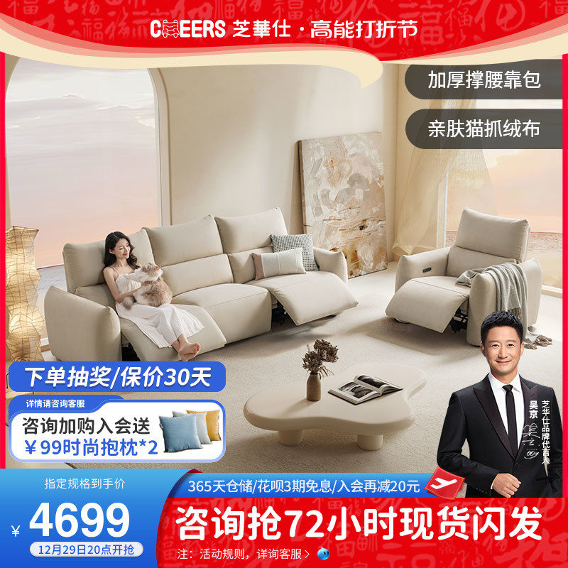 芝华仕头等舱电动功能猫抓布艺沙发奶油风直排客厅现代简约51027