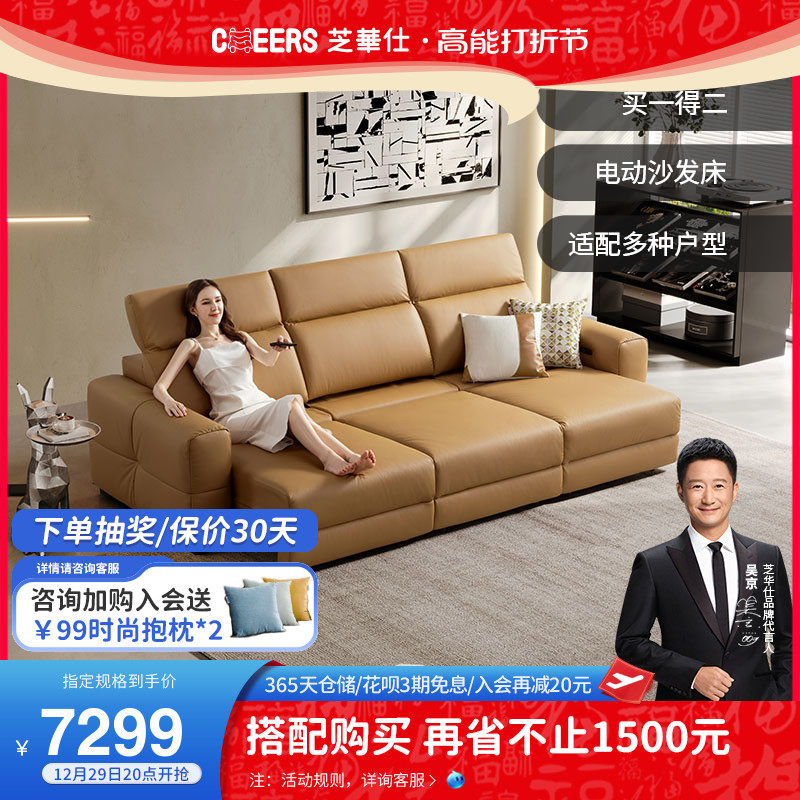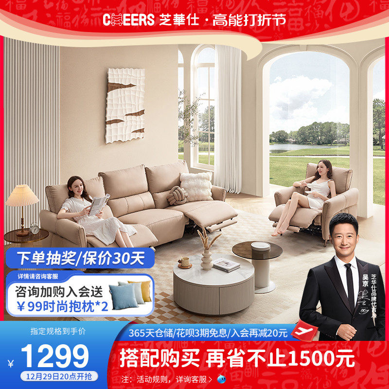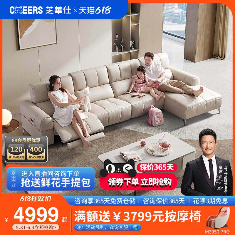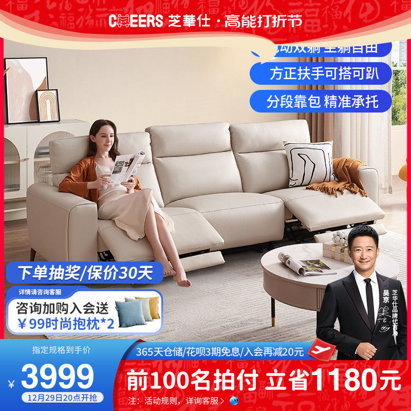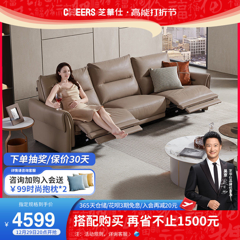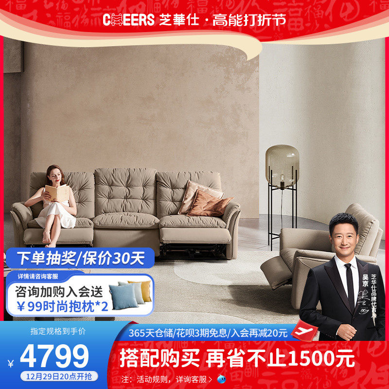 芝华仕头等舱电动功能猫抓布艺沙发奶油风直排客厅现代简约51027