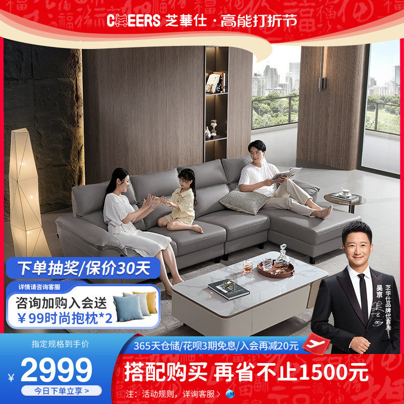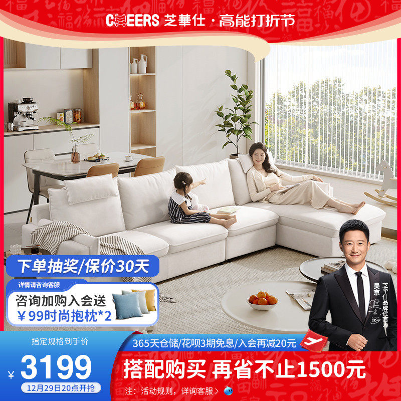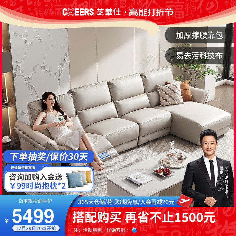芝华仕现代简约布艺沙发贵妃客厅2023新款猫抓布沙发转角家具2097