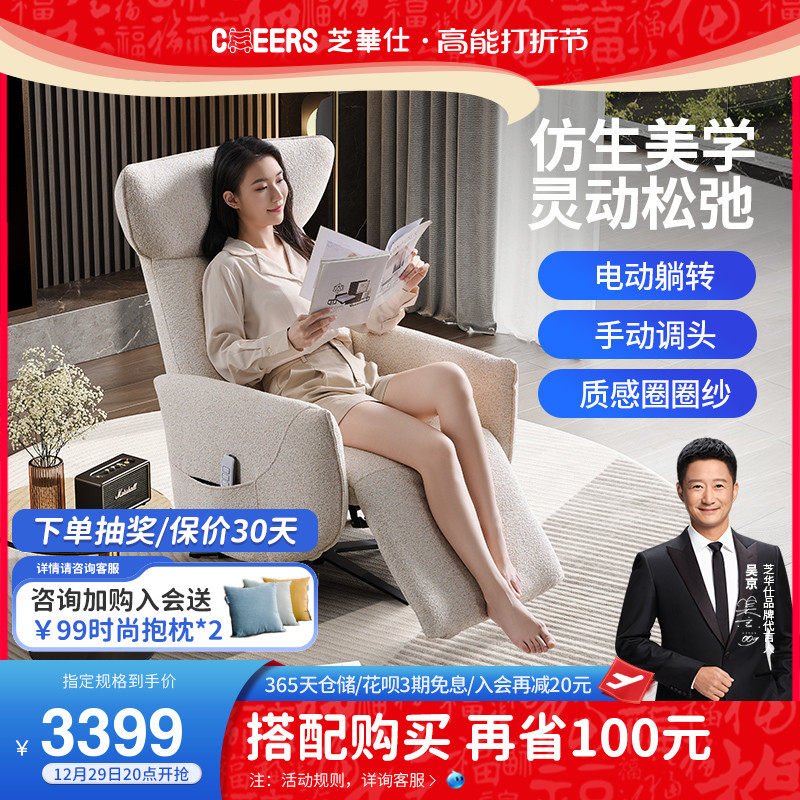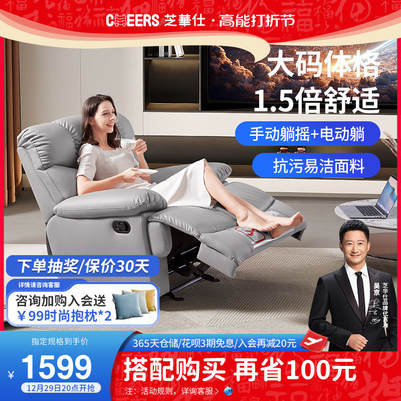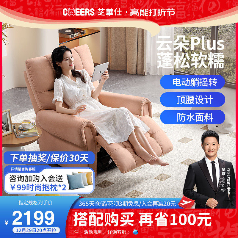 芝华仕头等舱意式轻奢布艺单人沙发客厅电动云朵闲懒人椅7休0532