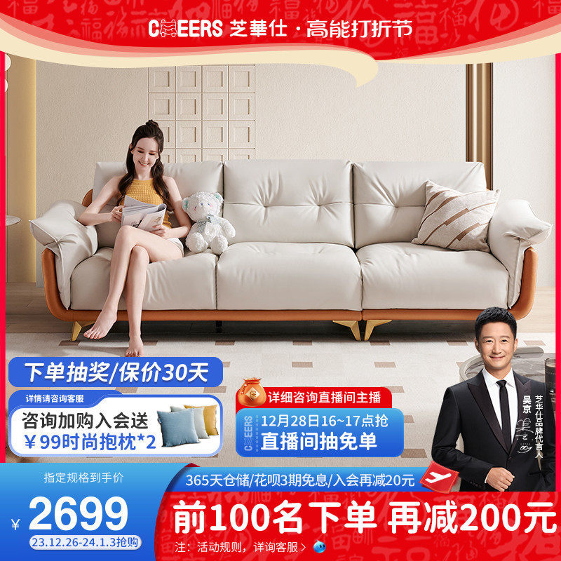 芝华仕意式轻奢帆船科技布艺沙发小户型三人直排客厅简约现代2076