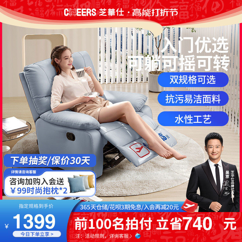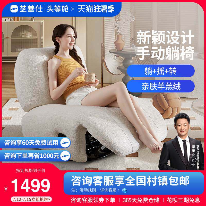 芝华仕线下同款头等舱现代简约布艺单人沙发手动功能休闲椅50785